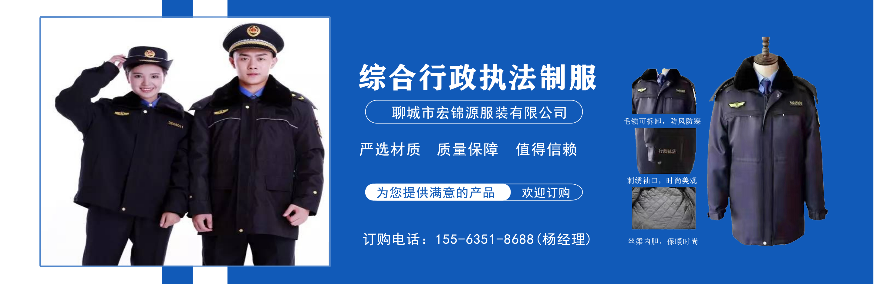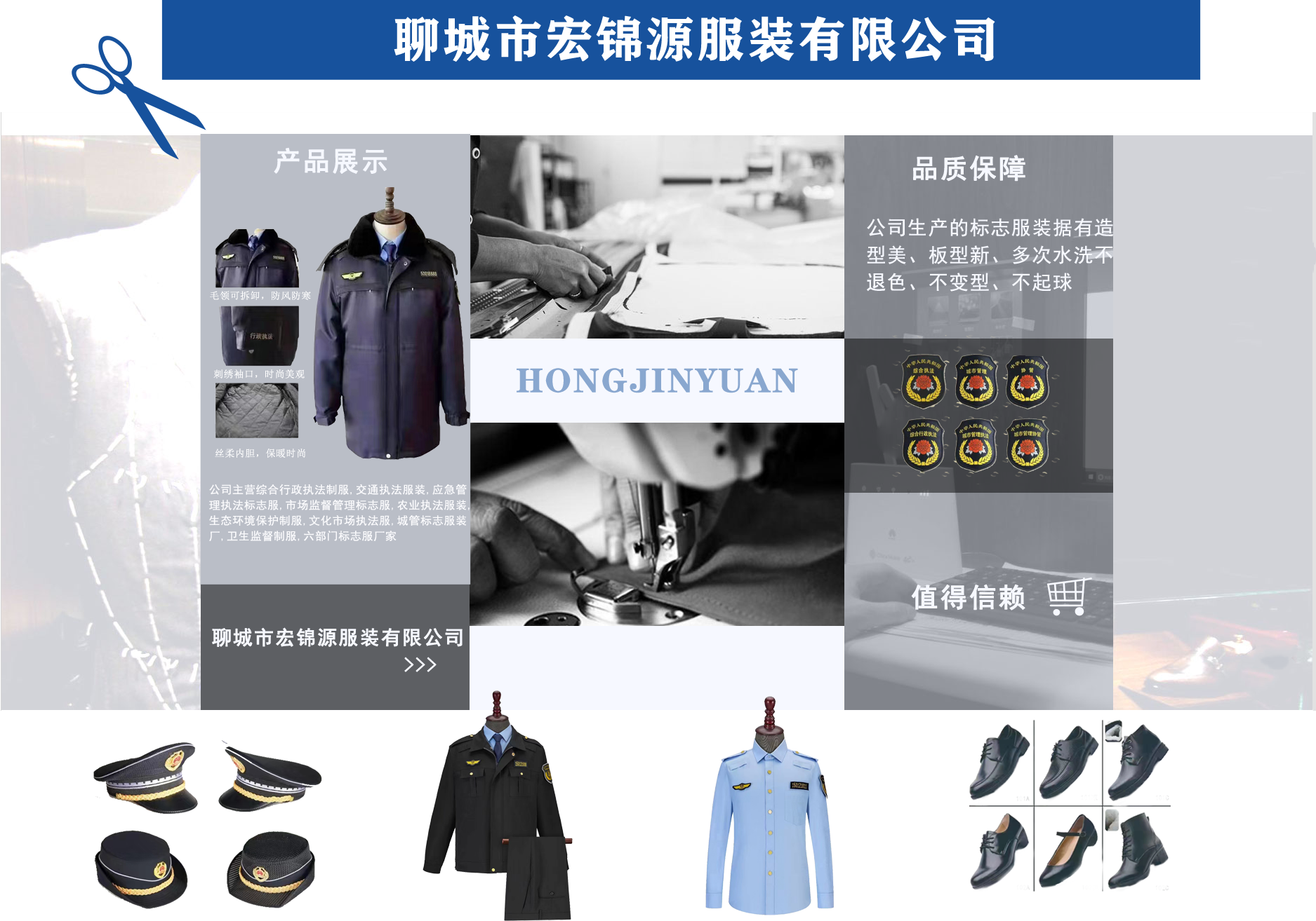 聊城市宏錦源服裝有限公司位于江北水城—山東聊城,地理位置優(yōu)越,交通便利。公司主營綜合行政執(zhí)法制服,交通執(zhí)法服裝,應(yīng)急管理執(zhí)法標(biāo)志服,市場(chǎng)監(jiān)督管理標(biāo)志服,農(nóng)業(yè)執(zhí)法服裝,生態(tài)環(huán)境保護(hù)制服,文化市場(chǎng)執(zhí)法服,城管標(biāo)志服裝廠,衛(wèi)生監(jiān)督制服,六部門標(biāo)志服廠家等,值得信賴! 公司生產(chǎn)的標(biāo)志服裝據(jù)有造型美、板型新、多次水洗不退色、不變型、不起泡?! 罢J(rèn)真辦事,踏實(shí)做人”是宏錦源的企業(yè)精神,我們的宗旨是:“用服務(wù)與真誠來換取你的信任與支持,互惠互利,共創(chuàng)雙贏!”我公司愿與國內(nèi)外各界同仁志士竭誠合作,共創(chuàng)未來企業(yè)目標(biāo):在已選定的服飾領(lǐng)域中,成為行業(yè)的卓越者。 經(jīng)營理念:追求產(chǎn)品卓越,為用戶提供完美、高效的服務(wù)。...